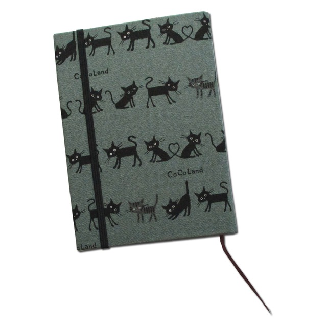 文庫本ハードカバー クロネコ CoCo缶プリント オックス生地 コットン 布製 フォーマルブラック 文庫本保護 MDノート保護 ライトノベル保護