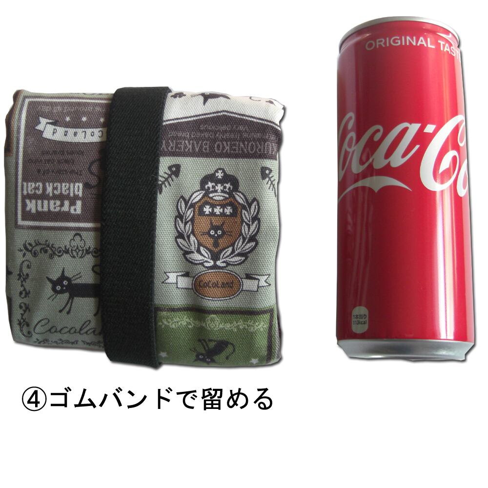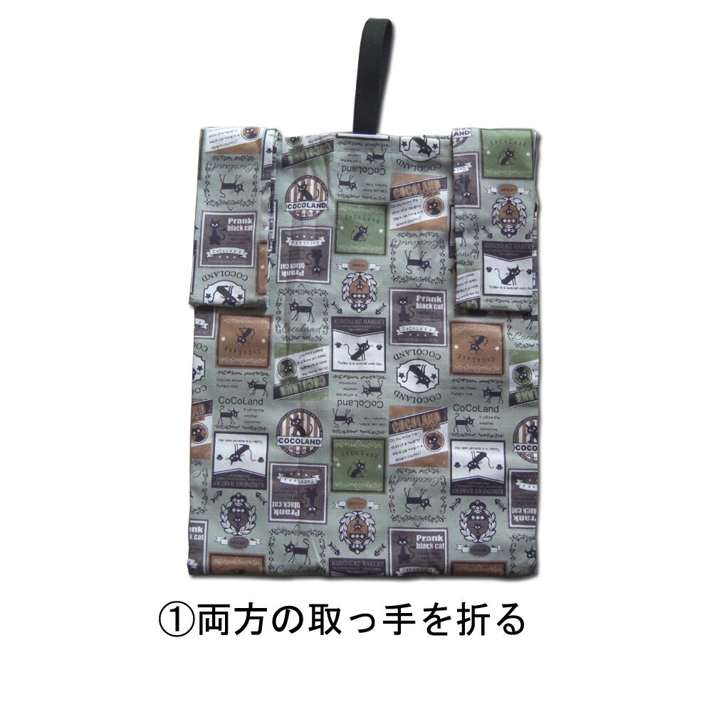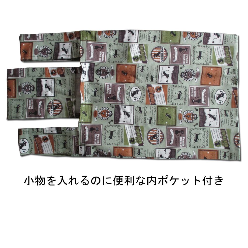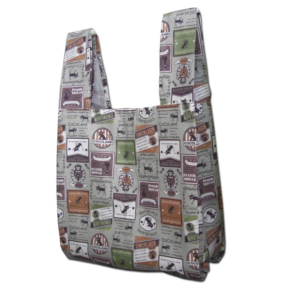 Coco Land ココランド 折りたためる クロネコワッペン柄 布製 エコバッグ 買物バッグ 内ポケット付 モスグリーン