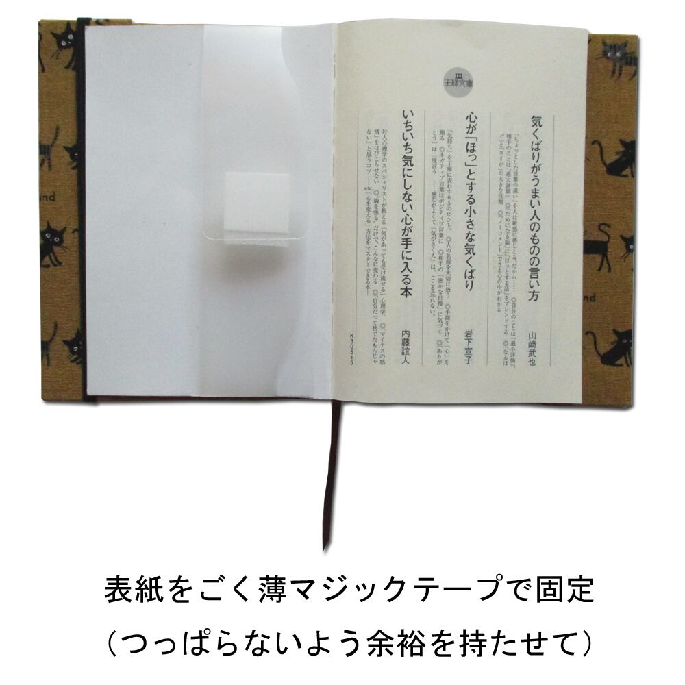 ※ライトノベルを透明カバー付きでお使いの場合は、マジックテープを使用せず、カバーに挟んでゴムバンドで留めて下さい。
