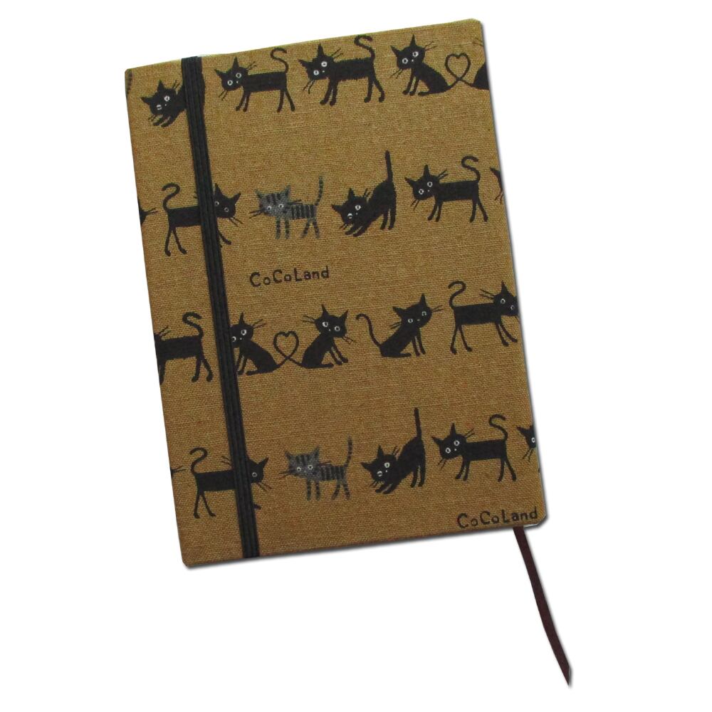 表紙が硬い 布製 猫の行列 文庫本ハードブックカバー マスタードイエロー 栞付 文庫本保護 MDノート ライトノベル保護