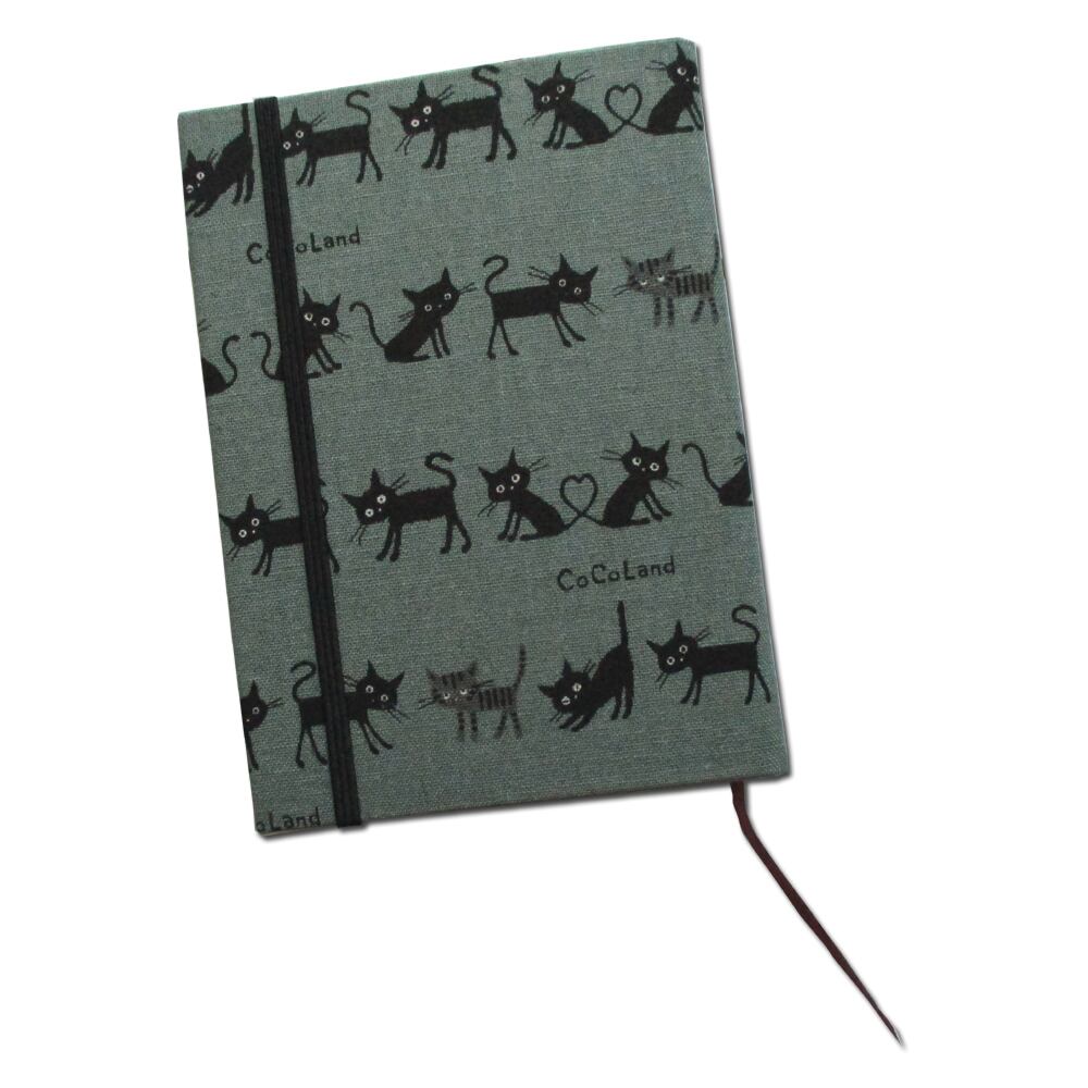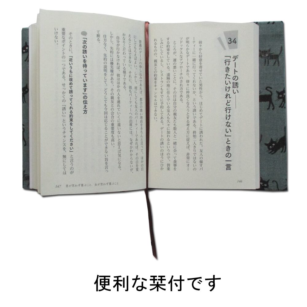 表紙が硬い 布製 猫の行列 文庫本ハードブックカバー ブルーグレイ 栞付 文庫本保護 MDノート ライトノベル保護