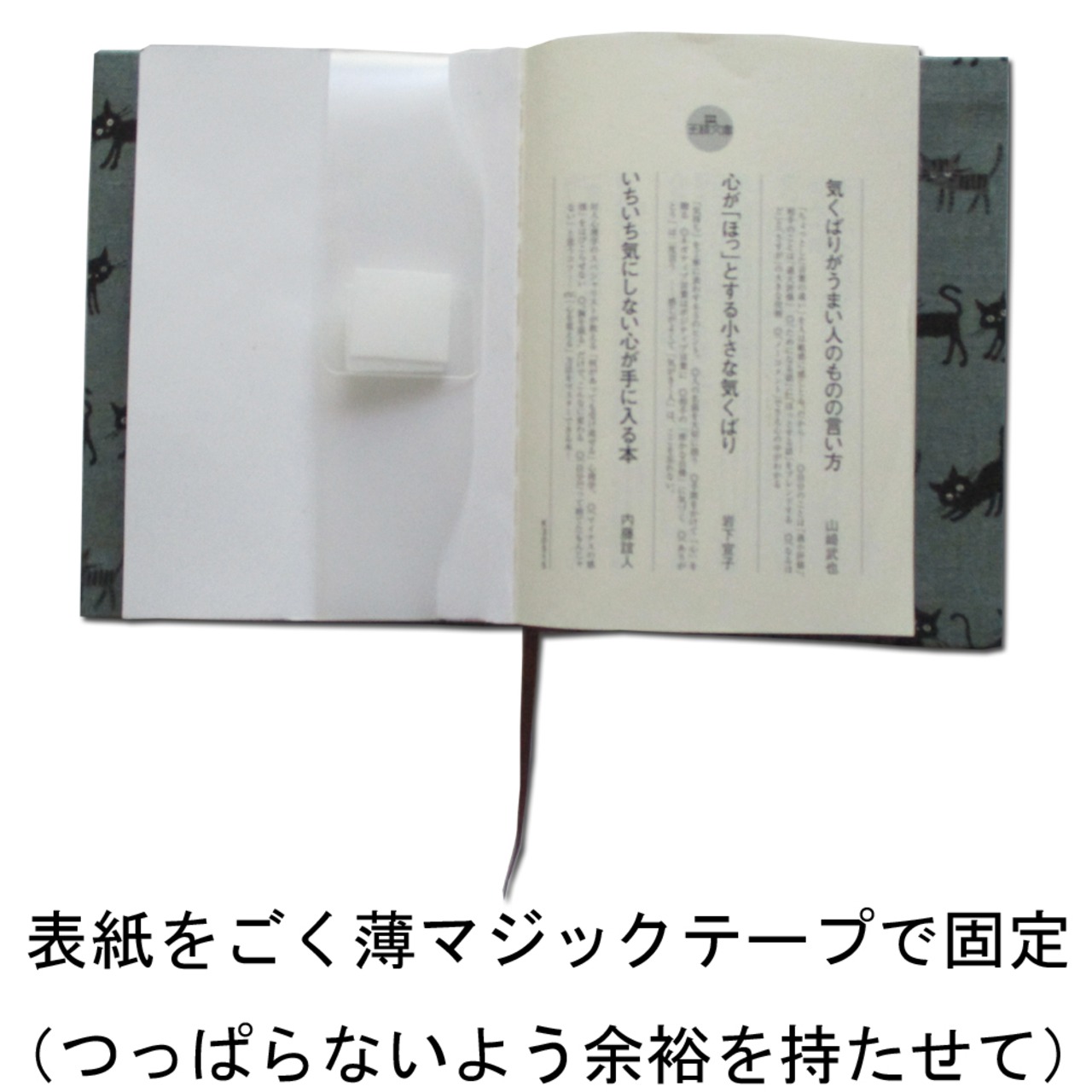 ※ライトノベルを透明カバー付きでお使いの場合は、マジックテープを使用せず、カバーに挟んでゴムバンドで留めて下さい。