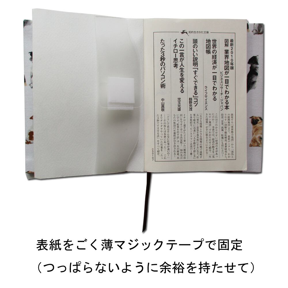 ※ライトノベルを透明カバー付きでお使いの場合は、マジックテープを使用せず、カバーに挟んでゴムバンドで留めて下さい。